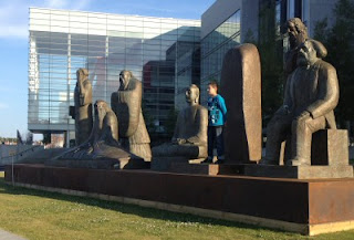 The summer holiday also included a visit to Sønderborg. Here we are by a statue next to the university, Alsion.